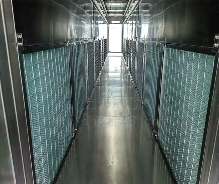 運風方式:左右上下強制循環(huán)運風,配中效過濾器;配0.75kw、10.5寸風機6套運風。